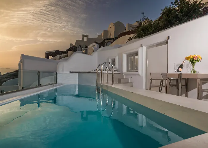 Het Elite Luxury Suites Oia hotel met 5 sterren is binnen slechts 14 minuten wandelen van het Kasteel van Oia en biedt een privézwembad en Wi-Fi in de hele accommodatie.